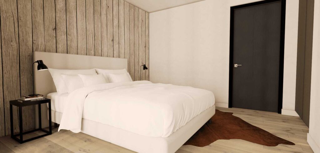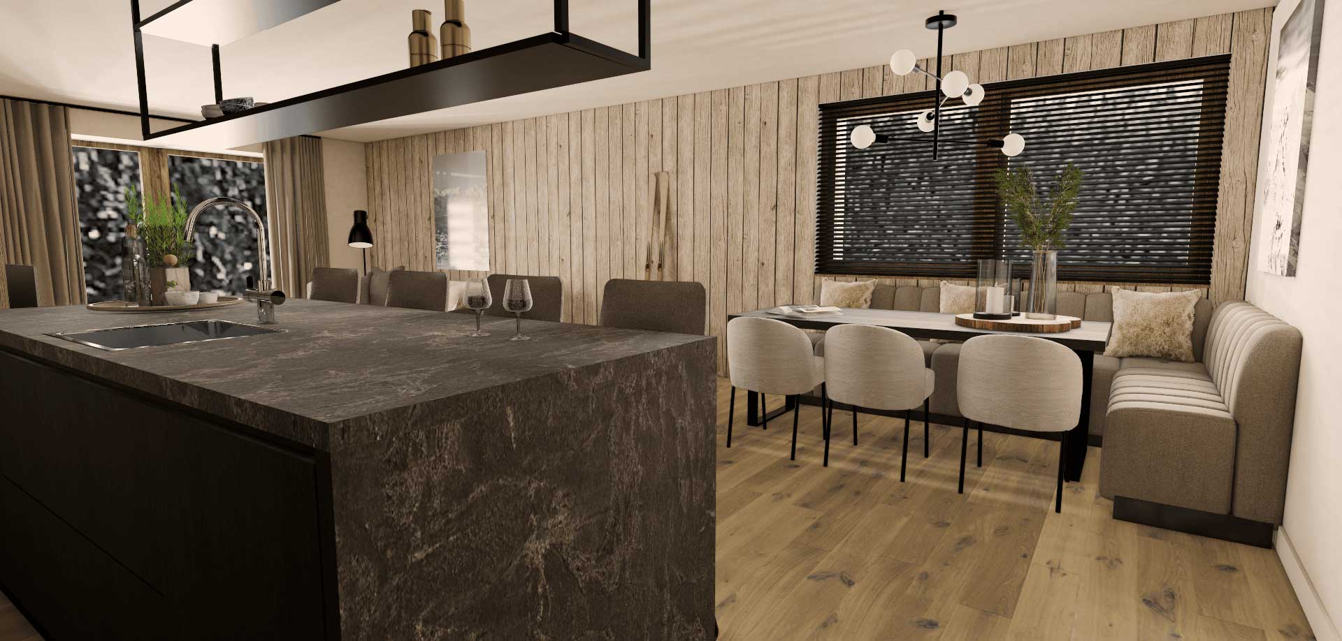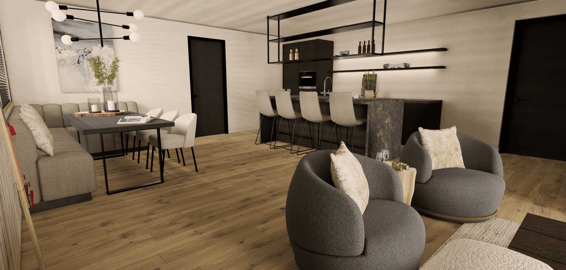 Net als Type 2 biedt dit appartement op de begane grond ruimte aan 4-6 personen. Dankzij de hoekligging stroomt het daglicht binnen via de vele ramen. Het ruime terras van ca. 17m² is bereikbaar vanuit de woon- en slaapkamers. Beide slaapkamers zijn voorzien van een eigen badkamer, en er is een aparte hal met toegang tot de privé sauna.