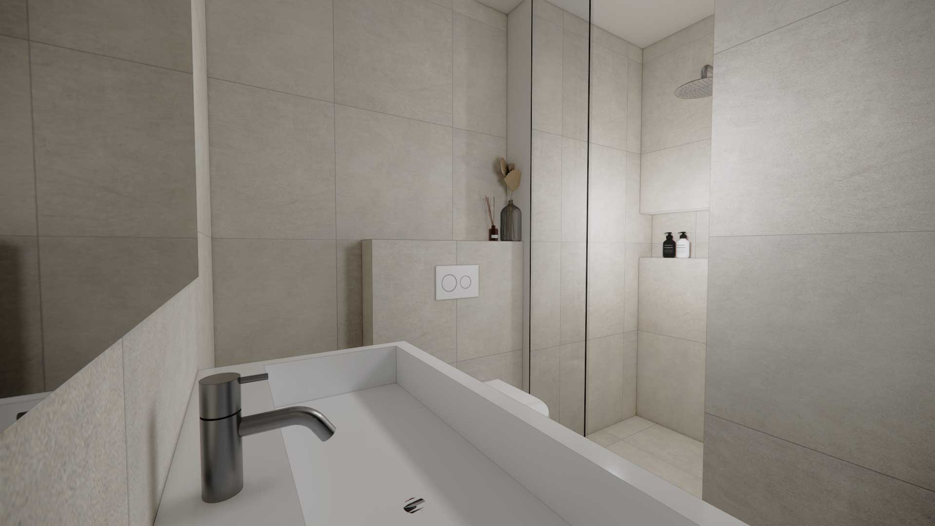 separaat toilet en een hoeksauna met douche.